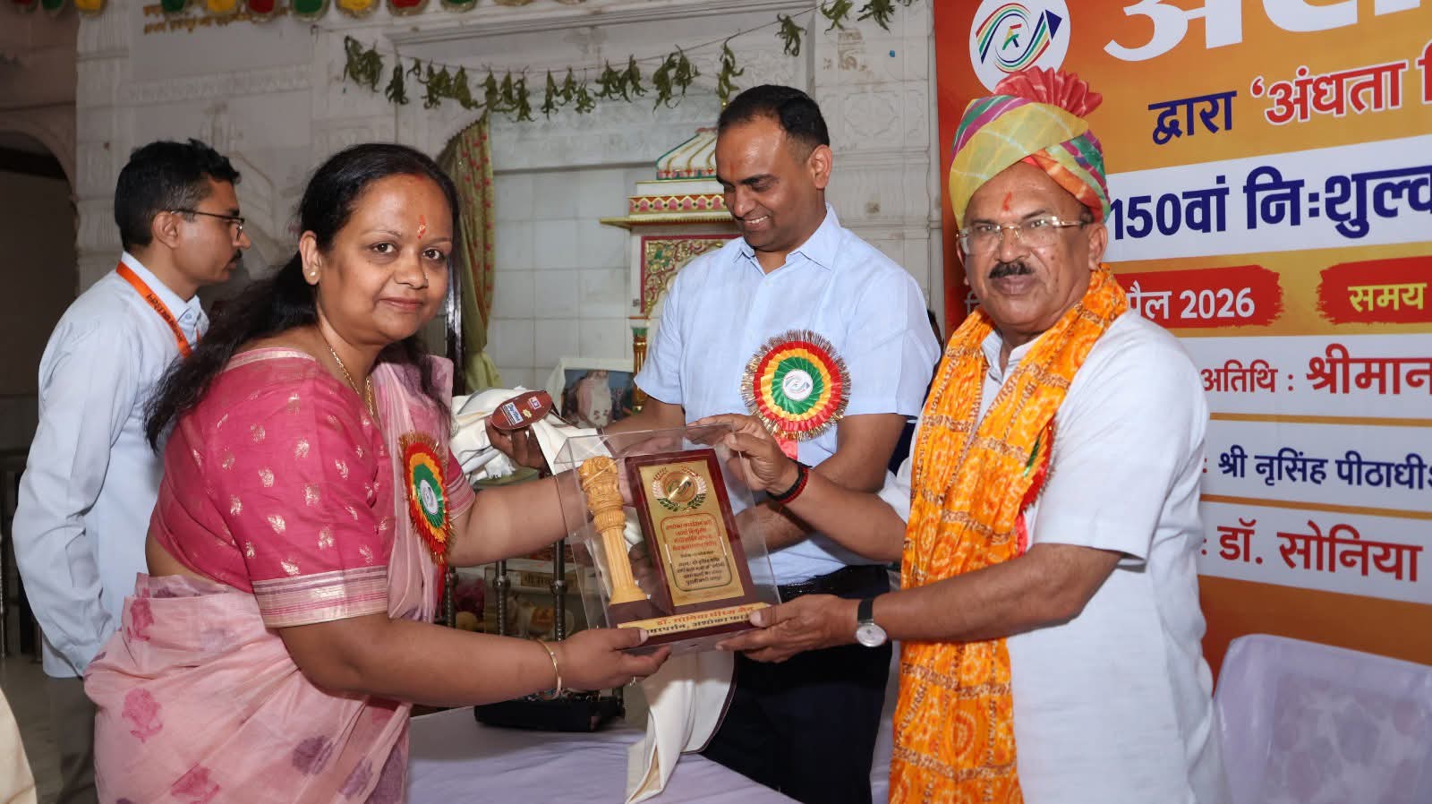 अशोका फाउंडेशन की ओर से अंधता निवारण महाभियान के तहत छोटी चौपड़ स्थित नृसिंह मंदिर बंशी वाले बाबा की बगीची परिसर में 150वां निशुल्क नेत्र रोग जांच शिविर का आयोजन 17 April ko हुआ। मुख्य अतिथि विधानसभा अध्यक्ष वासुदेव देवनानी रहे। फाउंडेशन चेयरपर्सन डॉ. सोनिया धीरज जैन ने बताया कि शिविर में 170 मरीजों की जांच हुई, जिनमें 55 को ऑपरेशन के लिए चुना गया। इस सराहनीय पहल के माध्यम से जरूरतमंद लोगों को नेत्र उपचार एवं बेहतर दृष्टि प्रदान करने का पुण्य कार्य किया जा रहा है।