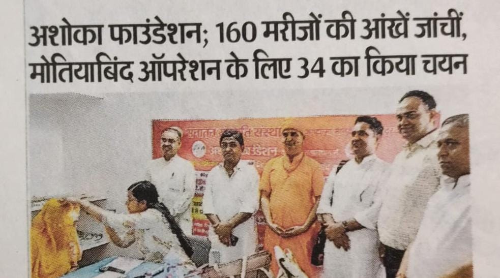 अशोका फाउंडेशन; 160 मरीजों की आंखें जांचीं, के मोतियाबिंद ऑपरेशन के लिए 34 का किया चयन