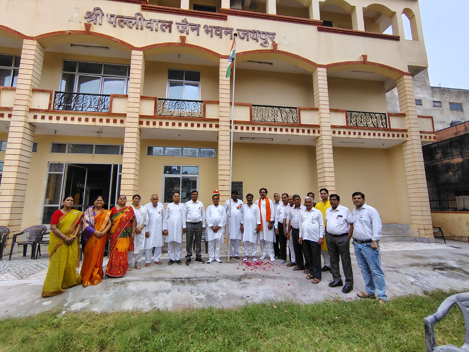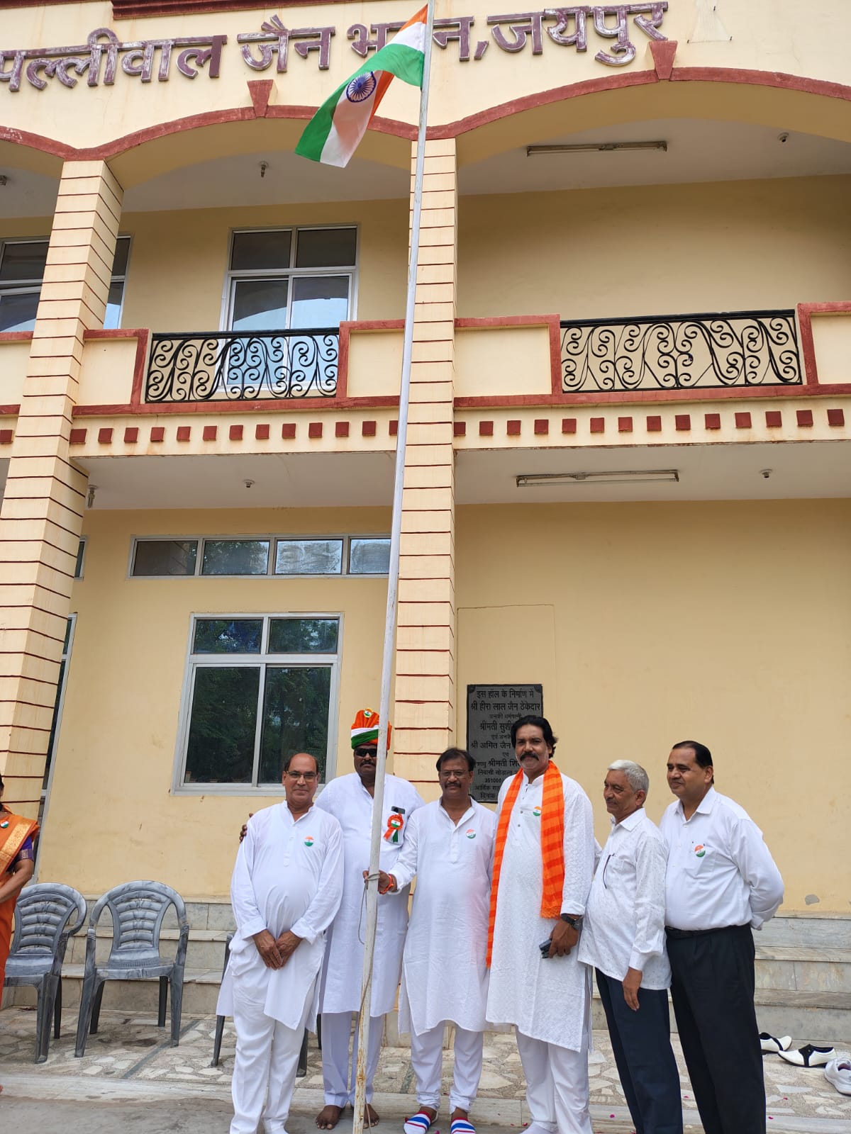 79 वें स्वाधीनता दिवस के अवसर पर श्री पल्लीवाल जैन भवन, मानसरोवर ,जयपुर पर अखिल भारतीय पल्लीवाल जैन महासभा, शाखा जयपुर के अध्यक्ष राजेन्द्र प्रसाद जैन ने झंडारोहण किया।