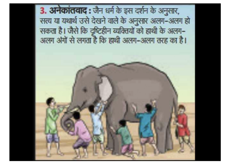 दार्शनिक या तार्किक विवाद भी कुछ इसी तरह चलते रहते हैं, किंतु सभी आँख वाले जानते हैं कि समग्र हाथी इनमें से किसी के भी समान नहीं है। जैन धर्म के अनुसार भिन्न-भिन्न दृष्टिकोणों से देखे जाने के कारण प्रत्येक ज्ञान भी भिन्न-भिन्न हो सकता है । केवल दो (‘सत्य’ और ‘असत्य’) नहीं, बल्कि सात स्तरीय तर्कपद्धति । ज्ञान की यह विभिन्नता सात प्रकार की हो सकती है-