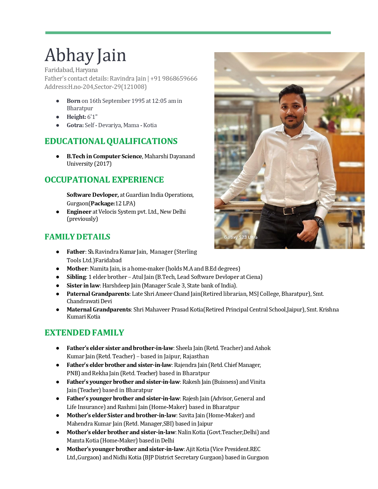डिजिटल पत्रिका में प्रकाशित युवक / युवतियों के विवरण का सत्यापन प्रकाशन समिति द्वारा नहीं किया गया है अतः प्रकाशन समिति कानूनी अथवा अन्य किसी भी प्रकार से जिम्मेदार नहीं होगी। वर वधु के चयन से पूर्व दोनों पक्ष प्रकाशित विवरण का सत्यापन व संपूर्ण जानकारी अपने स्तर पर करने के उपरान्त पूर्णतया संतुष्ट होने के बाद ही सम्बन्ध तय करने के लिए आगे बढ़ें। प्राप्त विवरण तीन माह तक प्रकाशित किया जा सकेगा, इसके पश्चात् बायोडाटा पुनः भेजने पर प्रकाशित किया जाएगा।